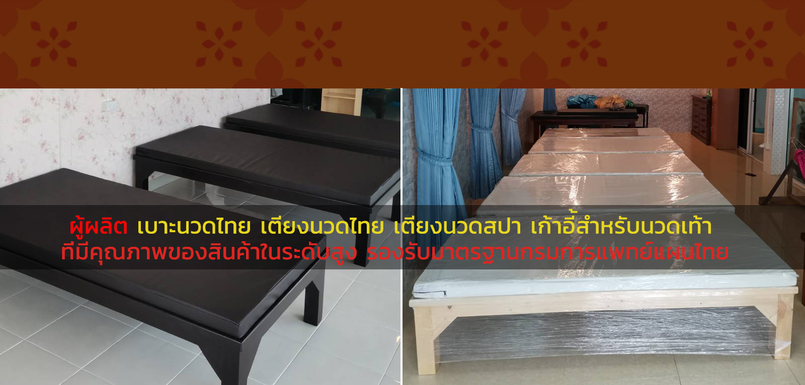 เว็บส่งเสริมธุรกิจร้านนวดแผนไทยและร้านนวดสปาไทย เว็บผู้ผลิตและจัดจำหน่ายสินค้า เบาะนวดไทย เตียงนวดไทย เตียงนวดสปา เก้าอี้สำหรับนวดเท้า ตู้อบสมุนไพร ที่รองรับมาตรฐานกรมแพทย์แผนไทย กระทรวงสาธารณะสุข สินค้าจากทางเว็บราคาไม่สูงเมื่อเทียบกับท้องตลาดทั่วไป มั่นใจได้ว่าถ้าตัดสินใจเลือกใช้บริการแล้วนั้น จะได้รับประโยชน์อย่างสูงสุดตอบโจทย์ความพึงพอใจ ในมาตรฐานสินค้าการบริการที่ดี และรวดเร็ว ส่งสินค้าตรงตามกำหนดนัดหมายทุกเคส