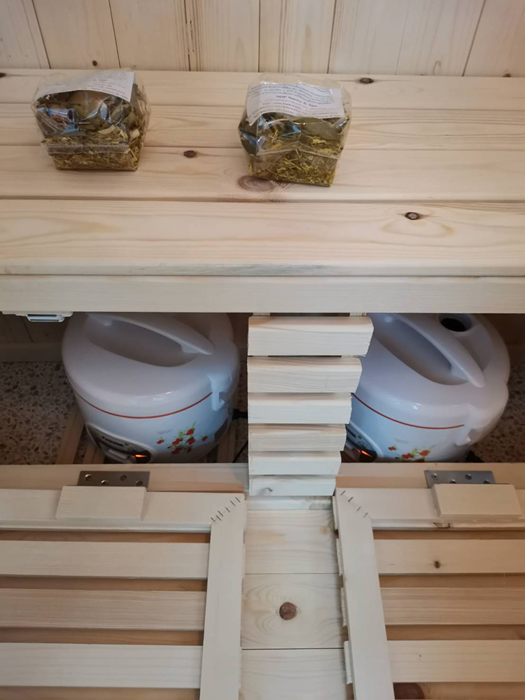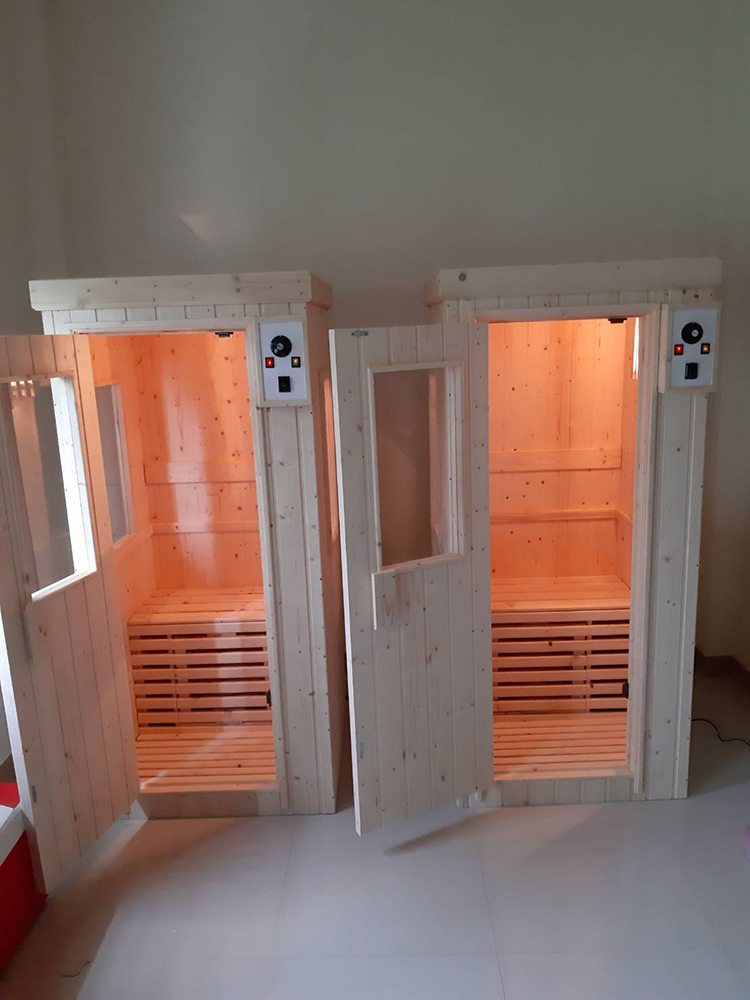 ผลิตด้วยวัสดุไม้สนนอกลวดลายสวยงามมีการระบายถ่ายเทความร้อนได้ดี ในตู้อบสมุนไพรมีอุปกรณ์ครบพร้อมสำหรับใช้งาน เช่น ชุดควบคุมอุณหภูมิเทอร์โมสตัท สวิตช์ปิด-เปิด หม้อต้มสมุนไพร กระจกใสสามด้าน สมุนไพรหลายชนิด โคมไฟส่องสว่างภายในตู้ มีการรับประกันการใช้งาน2ปี